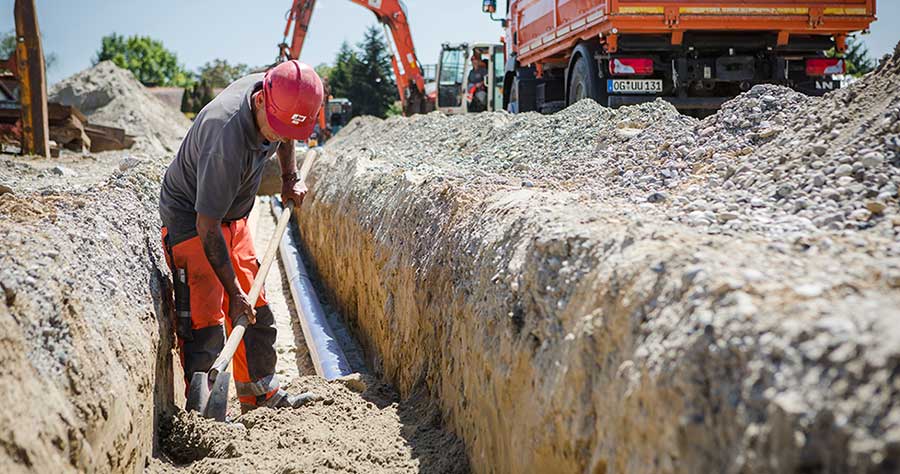 • Tiefbauarbeiten für Gas-, Wasser- und Fernwärmerohranlagen