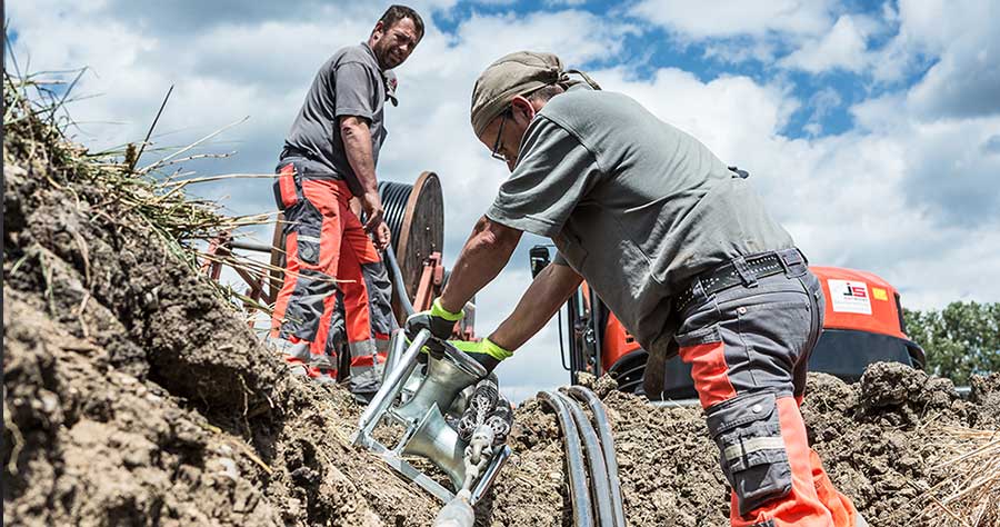 •  Verlegearbeiten mit Rohrpflug und Grabenfräse